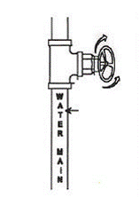 The shut-off may have a faucet handle or a lever. Usually you turn the handle clockwise to shut off the water and counter-clockwise to turn it back on.